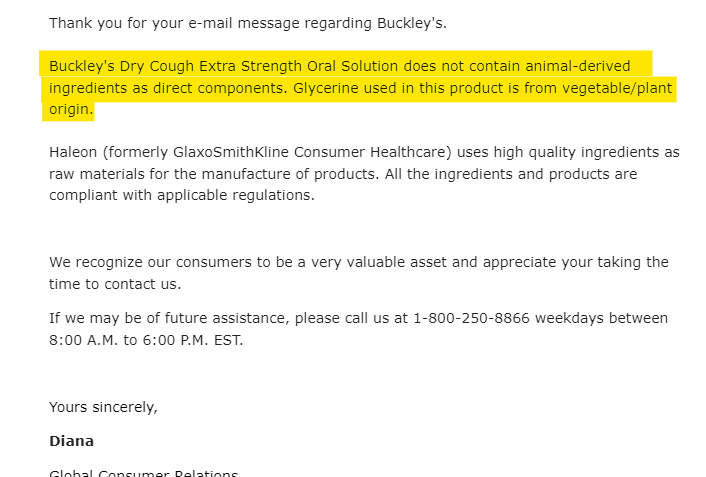 The query was regarding Buckley’s Dry Cough Extra Strength Oral Solution
