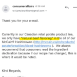 The query was regarding McCain Classic Hash Browns