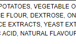 Ingredients: Potatoes, vegetable oil, torula yeast, rice flour, dextrose, onion powder, garlic powder, spices, yeast extract, natural flavors, and sulphites.