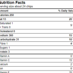 Nutritional Value (per 24 chips): 250 calories, 13g fat, 360mg sodium, 31g carbohydrates, 3g protein, 15% daily vitamin C, and 25% vitamin E.