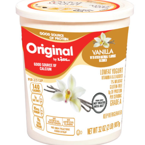 The query was regarding Original Blended Low Fat Yogurt Vanilla by Lidl